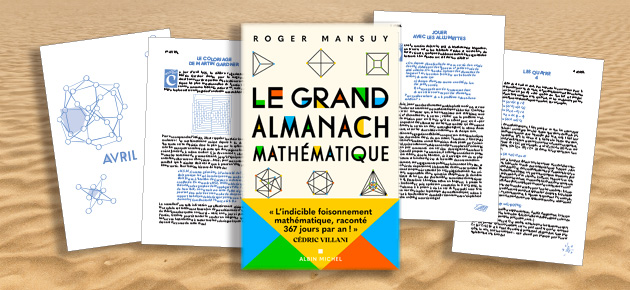 Roger Mansuy : Le format almanach n’était pas dans le projet initial. À l’origine, il y a l’envie de montrer qu’on a souvent une image trop réductrice des mathématiques. On voit bien sûr les exercices et les théorèmes, les grands édifices théoriques, les applications… mais on oublie que les mathématiques sont plus globalement une culture qui imprègne de très nombreuses activités humaines allant de la création littéraire ou artistique aux pratiques sportives, de l’histoire à la politique… Pour transmettre une compréhension de toutes ces traces dans nos sociétés, il a fallu trouver un format « digeste ». Avec Christian Counillon, directeur éditorial « Sciences » chez Albin Michel, on a réfléchi à différentes possibilités avant de parvenir à l’idée d’almanach ; si le format semble atypique pour la diffusion scientifique, il est bien rodé et permet aux personnes intéressées de lire une page par jour… ou de dévorer tout le livre d’un coup. En tant qu’auteur, il permet aussi de changer rapidement de sujet et donc d’aborder des thèmes très différents sans grande contrainte.