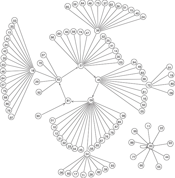 Kaprekar a cartographié l’ensemble des 10 000 nombres de 0000 à 9999, et il a montré qu’en dehors du puits 0000, il existait trois cycles de cinq nombres et un cycle de deux nombres. Le fait que ces cycles comportent tous deux ou cinq nombres est sans doute lié au système de numération décimale.