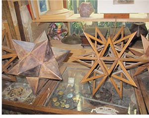 « Le travail des matières habituelles, pierre et bois, était pour moi difficile. J'ai rencontré des artisans et des professionnels ; il m'aurait fallu des années pour comprendre et réussir à travailler comme eux. Alors j'ai alors cherché un autre matériau à travailler, plus simple, et j'ai trouvé : la terre. Je conçois donc des polyèdres en terre. Toutes les autres pièces de l'atelier, en pierre et en bois, ont été réalisées par des artisans avec qui je suis en contact [NDLR : notamment le sculpteur et tailleur de pierre François Dejeumont, qui ... Lire la suite gratuitement
