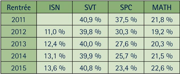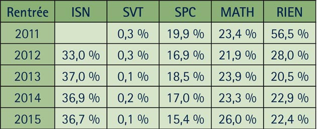 Il ajoute : « Les choses sont très similaires pour les établissements ne proposant pas l'enseignement de spécialité ISN. Le problème n'est donc pas du tout une décroissance de la part de l'enseignement de spécialité maths, mais de celle de l'enseignement en physique-chimie ! » Certes, ces statistiques montrent que la décroissance semble enrayée depuis quelques années. On constate cependant qu'à peine plus d'un lycéen sur cinq choisit la spécialité maths, alors qu'on sait combien cette discipline est utile dans de nombreuses fi lières du supérieur.