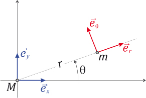 La difficulté du problème posé par Newton réside en partie dans le fait que le vecteur unitaire dirigeant l’axe (Mm) varie au cours du temps. En effet, si M peut être supposé fixe, ce n’est pas le cas de m, qui subit l’influence gravitationnelle du corps lourd : la distance r est une fonction du temps, le vecteur