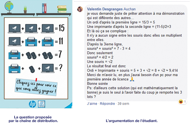 Les lecteurs de Tangente 189 (en page 5) se souviennent sans doute de Valentin Desgranges, ce jeune Toulousain de 19 ans qui a proposé une réponse mathématique sensée à un concours proposé en ligne par une grande chaîne de distribution (Auchan).