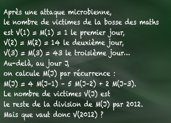 La solution donnée en page 51 était quelque peu absconse, et cet article est une bonne occasion de l’éclairer. Nous allons nous intéresser essentiellement à la suite M(n), qui obéit à une relation de récurrence linéaire. « Linéaire », car la valeur d’un élément est une combinaison linéaire de quelques-uns des précédents.